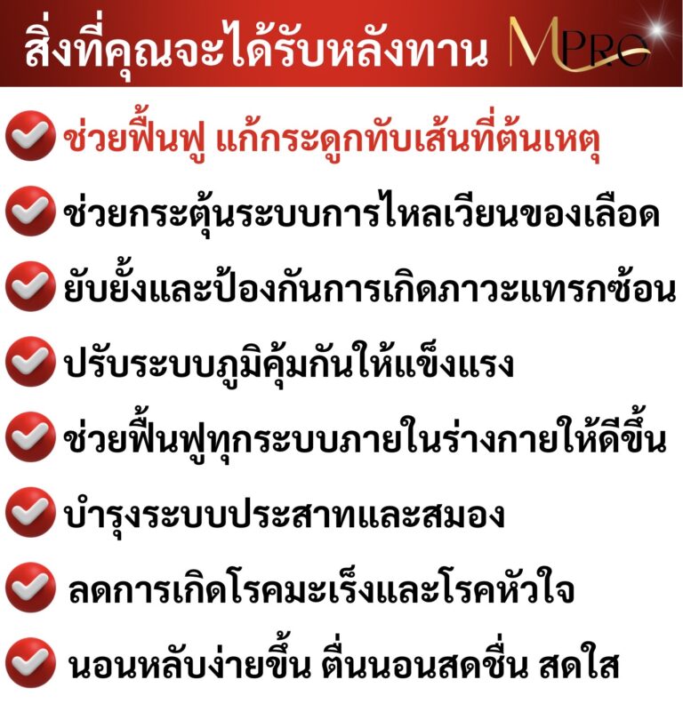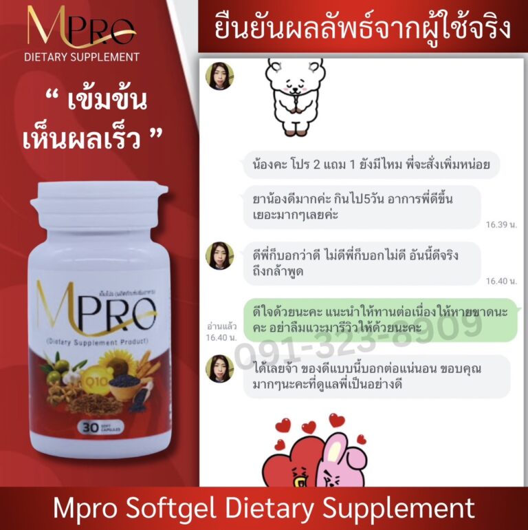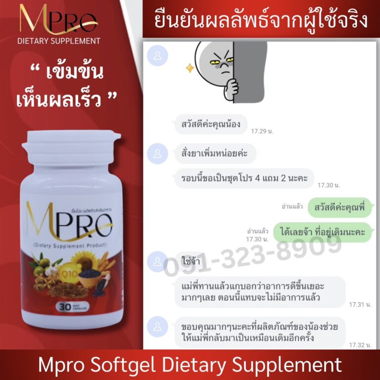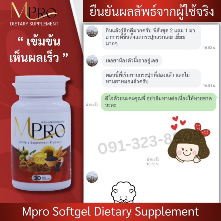 แต่เราโชคดีที่เพื่อนของลูกชายแนะนำให้ทานสมุนไพรสกัดจากธรรมชาติที่ชื่อ MPro เพราะคุณแม่เขาก็มีอาการเหมือนเรา แถมหนักกว่าเราอีก ตอนเป็นถึงขั้นหัวใจเต้นผิดจังหวะ และต้องไปกายภาพบำบัดด้วยเครื่องสัปดาห์ละ 2-3 ครั้ง รักษากับหมอดังๆมาเยอะมาก แต่ก็ไม่หาย เขายังทานแล้วหายเป็นปกติ เราเลยสั่งชุดโปร 2 แถม 1 มาลองทาน